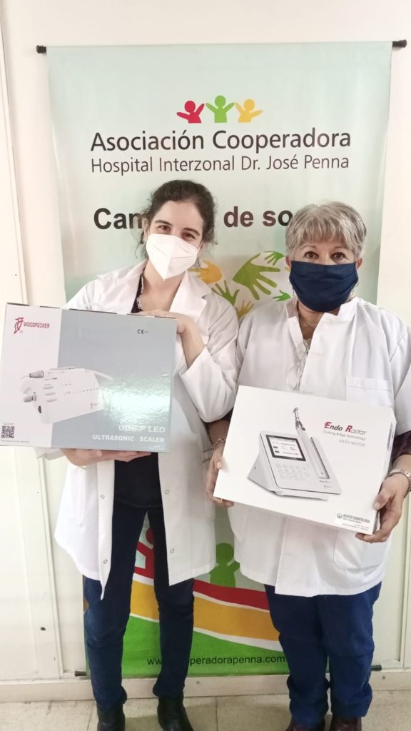 Se compró para el Servicio de Odontología un motor endo radar para tratamientos de conducto y un cavitador para limpieza dental. Valor estimado $ 200.000.- En la foto Dra. Yamil Fulgenzi y Dra. Ariana Jaca.