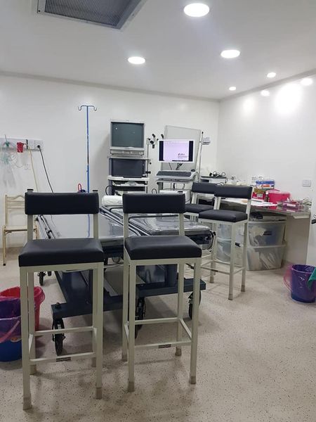 Entregamos al Servicio de Gastroenterología, cuatro banquetas de metal con respaldo.